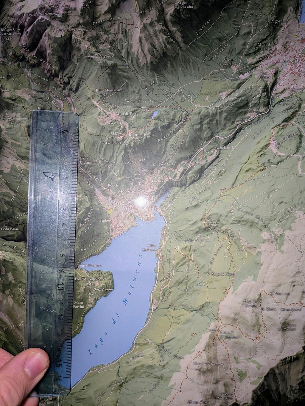 Una rappresentazione ad alta definizione delle Dolomiti di Brenta, in cui creste, valli e altopiani emergono con straordinario realismo grazie alla proiezione ortografica obliqua, che restituisce il rilievo montuoso senza distorsioni prospettiche.